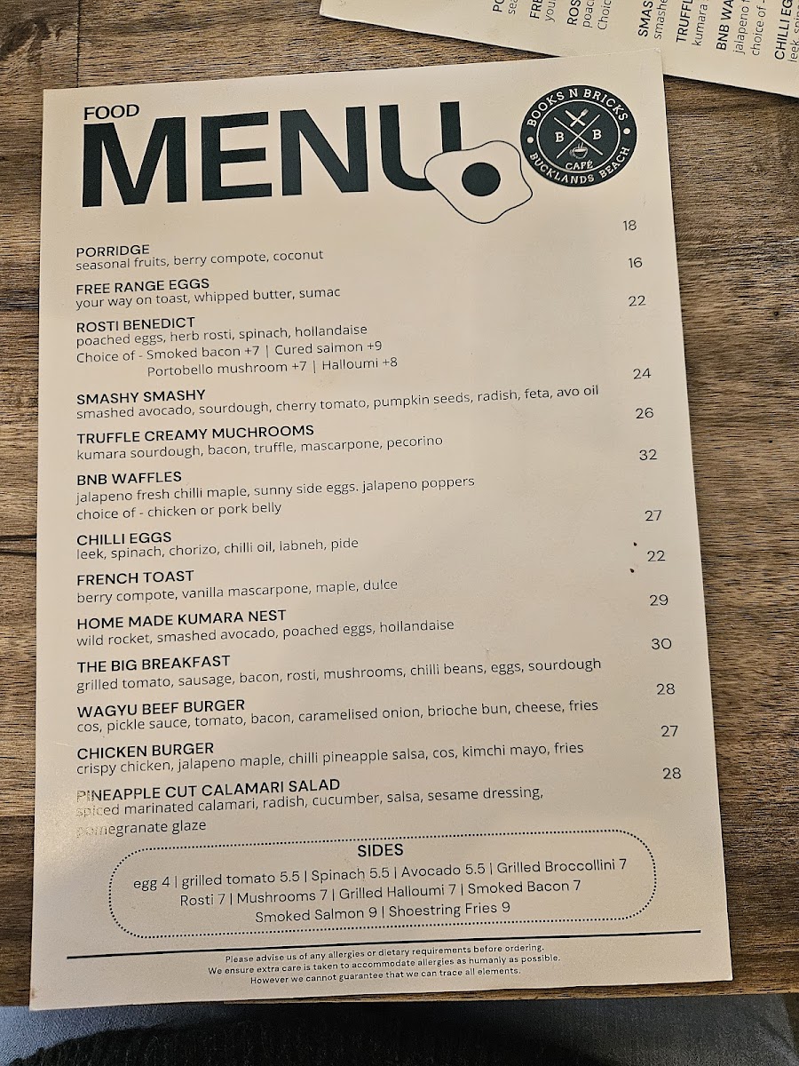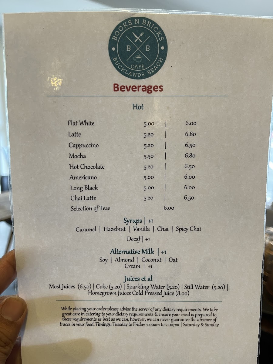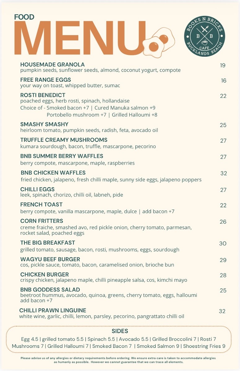Books N Bricks Cafe Menu