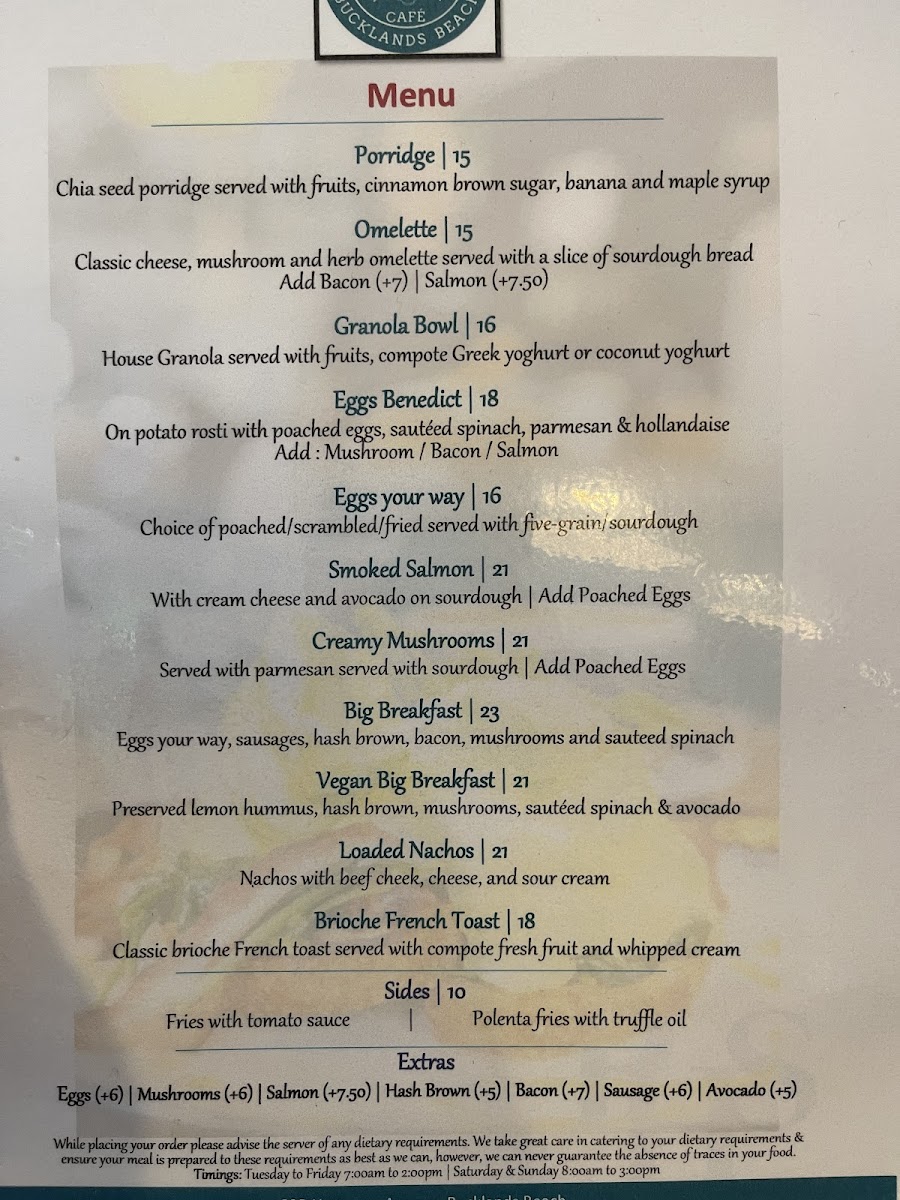 Visitors to the cafe can expect options that range from full breakfast plates to lighter choices and a variety of hot drinks. The menu supports casual dining with both communal and individual orders, accommodating different group sizes and dining preferences.